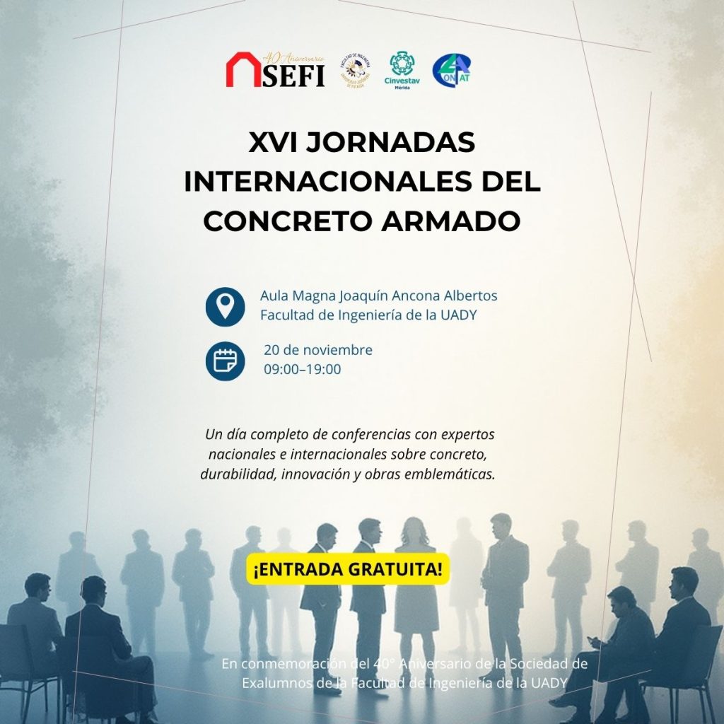 📢 Mañana se realizan las XVI Jornadas Internacionales del Concreto Armado en la Facultad de Ingeniería de la UADY.